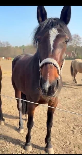 -Traber Stute - 1,63m groß - 6 Jahre alt (wird Ende März 7) -schmiedefromm -steht in gemischter Herde (rangmittig) -Kein Anfängerpferd Sie hatte 2023 einen Weideunfall dadurch zog sie sich einen Riss im Meniskus zu. Die Bänder und Sehnen sind dabei gott sei dank nicht verletzt worden. Röntgenbilder liegen vor. Aktuell keine Probleme mit dem Knie und voll reitbar. Sie braucht einen ruhigen,konsequenten Reiter der ihr Zeit und Sicherheit gibt. Auf dem Reitplatz kann man sie gut reiten ,noch etwas unausbalanciert und muss weiter gefördert werden. Im Gelände sehr hektisch und teilweise nicht gut kontrollierbar (mehr dazu gern telefonisch) Von den Vorbesitzern weiß ich das sie einen Bockhuf hatte, sie wurde aber im Alter von 4Monaten operiert. Somit sieht man es nur noch wenn man genau hinschaut(siehe Bilder) Bei ernsthaftem Interesse oder Fragen gern melden. Ich wünsche mir für sie einen Platz mit viel Bewegung, könnte mir auch eine Offenstallhaltung in kleiner Gruppe vorstellen.