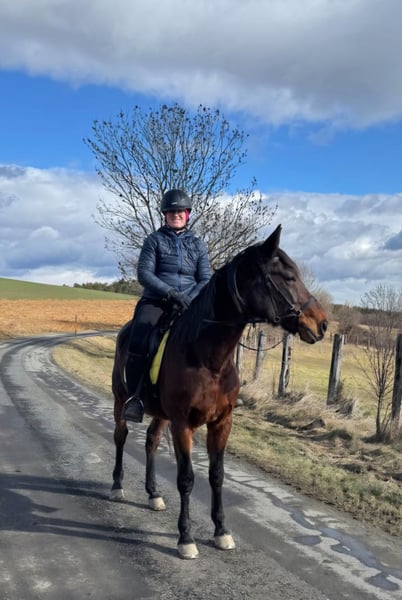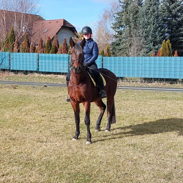 Xaver ist ein ganz lieber, netter und hübscher Traberwallach. Er ist 10 Jahre alt und ca 1,58 m groß. Er ist ganztägigen Koppelgang in einer größeren Herde gewohnt. In der Herde ist er total unkompliziert und sicherlich auch für eine Offenstall-Haltung geeignet. Xaver war ein treues Rennpferd, wurde immer bestens versorgt und geliebt. Deshalb haben wir uns jetzt Zeit gelassen, ihn mit Ruhe zu einem soliden Freizeitpferd auszubilden! Er ist ein fantastischer Ausreitpartner für stundenlange Geländeritte. Er geht immer zügellos im Schritt, brav im Trab, (noch) schnell im Galopp und entspannt sich danach gleich wieder. Ich reite ihn gerne gebisslos, ist aber kein Muss. Im Viereck geht er auch brav, allerdings hat er den Sinn noch nicht verstanden. Longieren und Bodenarbeit machen ihm Spaß. Er ist sehr genügsam und angenehm, er geht gerne jeden Tag, es stört ihn aber auch nicht wenn er nur 2x im Monat bewegt wird. Er ist das ideale Pferd für Wander- und Distanzreiter. Sicherlich ist er auch für Wiedereinsteiger geeignet. Sehr brav beim Hufschmied und Transport.