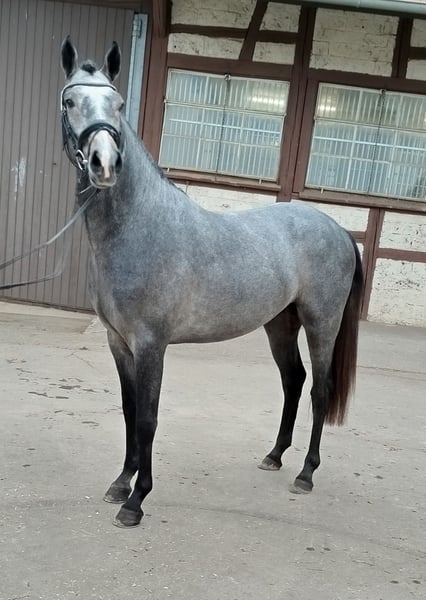 Verkaufe deutsches Reitpferd – Hengst, geb. 2023, Apfelschimmel Zum Verkauf steht ein vielversprechender Jung-Hengst von Singulord Joter! Er besticht nicht nur mit einer wunderschönen Ausstrahlung ebenso zeigt er viel Potenzial am Sprung. Seine Endgröße wird so ca. 165 cm Auf Wunsch können wir ihn hier Kastrieren. Bei weiteren Fragen bitte gerne melden oder mit uns persönlich ein Termin aus machen! LG Joos