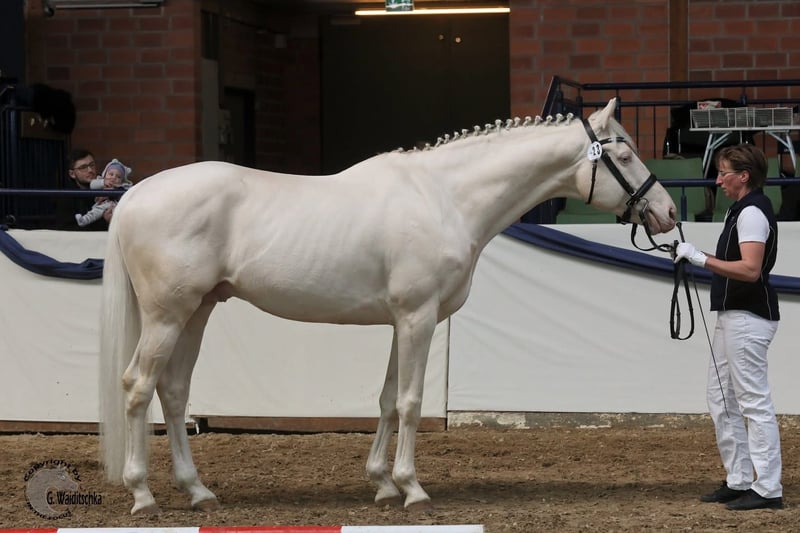 Alasdair GF kann bereits mit Sporterfolgreicher Nachzucht in der Vielseitigkeit glänzen und zeichnet sich nicht nur durch seinen absolut besten Charakter sondern auch durch seine gute Vererbung aus. Hervorzuheben ist natürlich die reinerbige Cremanlage die aus den Nachkommen immer einen Cremträger hervorzaubert ! Aus Fuchsstuten können Palominos fallen und aus Braunen auch Buckskins oder je nach Genetik andere Cremvarianten. Decktaxe ist gestaffelt , 150,-€ Anzahlung und 850,-€ bei Trächtigkeit ! Er deckt alle Farbvarianten zum selben Tarif ! Zugelassen für einige Deutsche sowie Ausländische Verbände !!