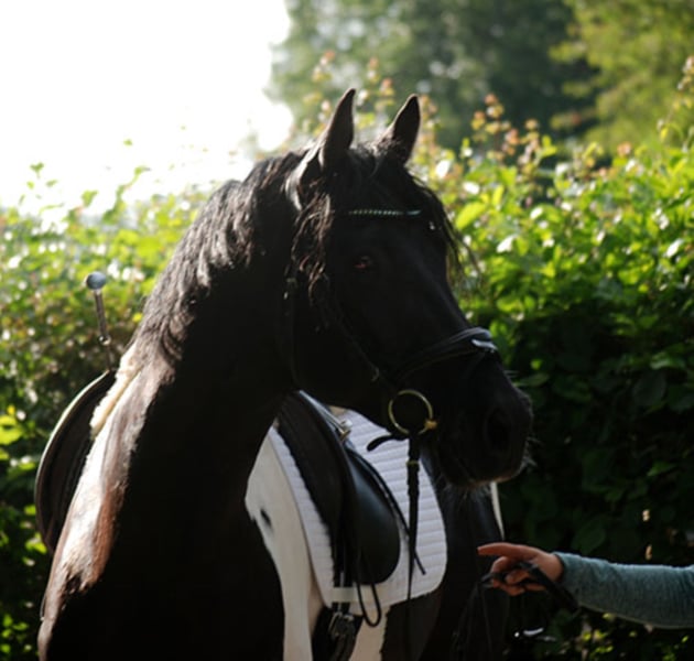 Classic Deluxe - en vacker rörelsekonstnär i en sällsynt svartprickig färg. Licensierad och bästa ZfdP-hingst i Kreuth, prestationstestad på L-nivå (50 dagars provdressyr), alltså livslång avelsrätt i hingstboken 1! En raritet när det gäller typ, stamtavla, sportighet och färg. Erkänd för ZfdP (tysk häst), Oldenburg Association och DSP (tysk sporthäst), andra föreningar på begäran. Under säsongen 2024 (01.03.2024-31.07.2024) tillgänglig via färsk/frakt av sperma i Tyskland. Avelsavgift 950 EUR (för enfärgade ston) eller 1 500 EUR (om ett homozygot föl faller från ett färgat varmblodssto). Uppfödarvänlig uppdelning av avelsavgiften, se villkor. Hans avkommor är helt övertygande, än så länge alla prisbelönta, stora linjer med faderns geniala rörelsemekanik och en hel del typ. Statistiskt sett är färgnedärvningen hos enfärgade ston 50%. Om du älskar färg behöver du inte längre vara utan kvalitet. Vi ger dig gärna råd om dina parningar. 0177/8140272. Mer information om denna extraordinära sporthingst finns på www.sportschecken.de Hans far Cadeau Noir/Hann. är nu etablerad i den avancerade dressyrklassen, liksom hans morfar Blickpunkt e. Belissimo M x Fidermark. Färgen här kommer från mödernet på den färgstarke S-dressyrvinnaren EH Samico F, som väckte uppmärksamhet med ett stort antal mycket framgångsrika avkommor. Mormor Shakira var också det 4-åriga nationella championstoet i ZfdP. Toppgenetik i utomordentligt vacker färg. Classic Deluxe är uppställd av Constanze Möller i Ennigerloh dressyr, är redan DrPf. L placerad, DrPf. M första reserv - visar potential för mycket mer! Utnyttja denna möjlighet!