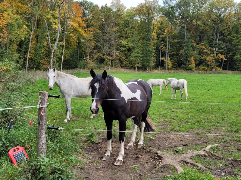 For sale: Versatile German riding horse – a friendly leisure partner. We are offering an elegant German riding horse, bred by us, born in 2015. This attractive mare impresses with her friendly nature and beautiful appearance, making her an ideal companion for leisure riding. She is, however, looking for regular work and training. With a height of 16.1 hh, she has a well-balanced size. Her sire is Idefix from the Icon line. The mare is regularly ridden in the field and occasionally on the arena. She has a solid basic training, is consistently eager and friendly in handling, confident on her feet, and has a pleasant basic gait. Thanks to her calm and balanced temperament, she is suitable for advanced riders as well as ambitious leisure riders who value a reliable and well-trained partner. She is healthy, regularly dewormed, teeth have been maintained regularly, and she is in good condition. No known health issues, and she has always received her vaccinations reliably. She is familiar with open stable management and has also been kept in a box stall before. Due to personal reasons, we are reluctantly selling this mare. This German riding horse mare is a true asset for any leisure rider seeking a dependable, well-trained horse. For inquiries or further information, please feel free to contact me. A custom-made Kent & Masters saddle can be purchased at an additional cost. All winter blankets are included.