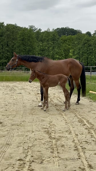We are offering our main premium mare, Ce la vie, born in 2013. She is by Carrico (Catoki) out of Arpeggio / Francisco I, and was trained in dressage up to level M during her first six years, thanks to her excellent movement dynamics and rideability. Due to a change in her rider and her outstanding pedigree, she was then retired to breeding and has given us five beautiful foals. In the meantime, she was ridden again for a year and also showed talent in show jumping. Currently, she is in foal to Global Dancer, expected to foal around May 12, 2026. Ce la vie is of high rank and possesses a very reliable and honest character. She has been regularly wormed, presented to the farrier, and is loading well. With Ce la vie, all options are open: she is a very loving mother but can also be restarted under saddle and used as a riding horse. The foals from 2024 and 2025 are still in our possession and can be visited on-site. The colt from this year has been approved for the foal championship in Lienen and placed 12th among the jumping-oriented foals. Pocket Rocket MB is also available for purchase. Please feel free to contact me if you are interested.