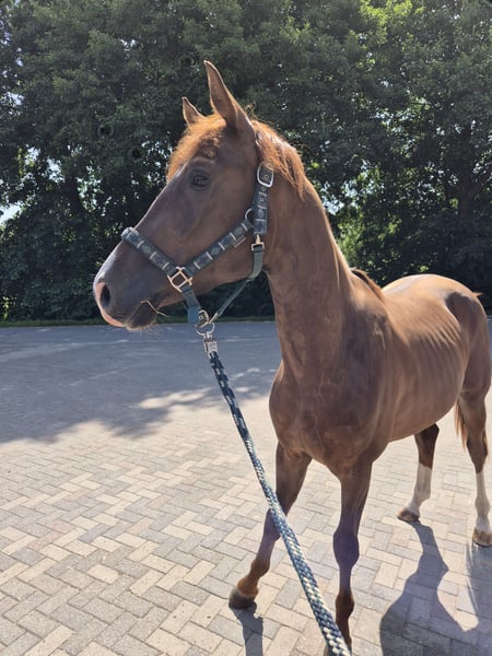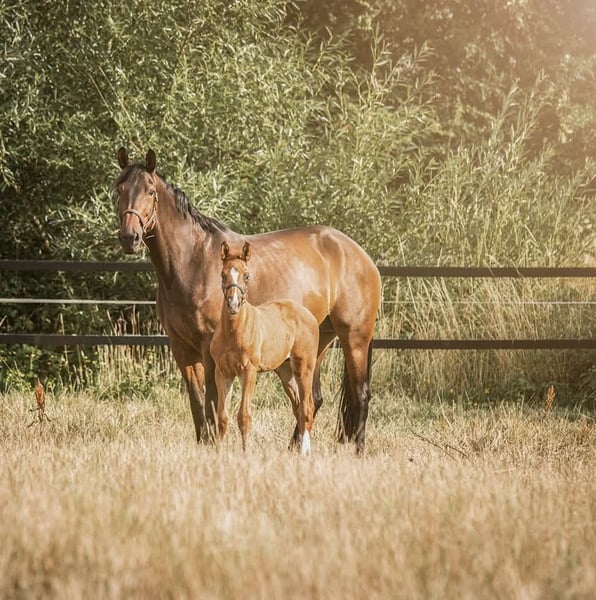 With a heavy heart, I am selling my 14-year-old mare Ravenna as a future broodmare. She is absolutely compatible with other horses. She has been in my possession for six years and underwent a suspensory ligament surgery four years ago, which caused a nearly two-year break during which she was covered. She is being sold exclusively as a broodmare. The issues with her leg do not affect her suitability for breeding. Her now 3-year-old son (Zoom x Riccione) is still in my possession and is currently being backed. He is stabled at the same facility and can be viewed by appointment. Please contact me privately for more information and additional pictures/videos. The well-being of the horse takes priority over the price; she deserves a good life.