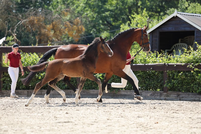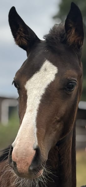 Ich biete mein wunderschönes Stutfohlen zum Verkauf an, das vom aktuellen Bundeschampion der 7-jährigen Dressurpferde, SKY, abstammt. Da ich mich entschieden habe, die Mutterstute zu behalten, suche ich ab Ende Oktober ein neues, 5-Sterne Zuhause. **Mütterliche Abstammung**: Sie hat als Ur-Ur-Großmutter die renommierte Puppenfee im Pedigree, die Hengste wie San Amour 1 und San Amour 2 sowie einige prämierte Töchter und Enkeltöchter hervorgebracht hat. Mit dieser beeindruckenden Abstammung und ihrer charmanten Persönlichkeit hat sie das Potenzial für eine erfolgreiche Karriere im Dressursport. Ich freue mich darauf, ein liebevolles und förderndes Zuhause für sie zu finden. Bei Interesse oder Fragen stehe ich gerne zur Verfügung