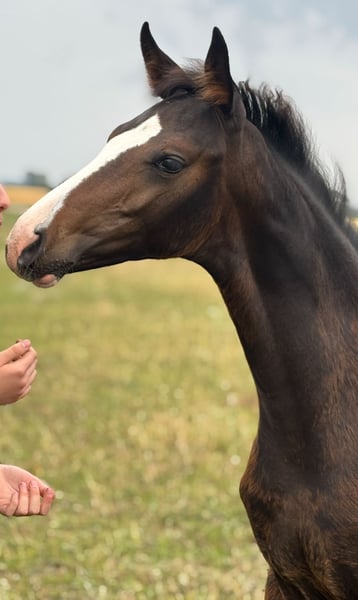 I am offering my beautiful filly for sale, who descends from SKY, the current national champion of the 7-year-old dressage horses. Since I have decided to keep the dam, I am looking for a new, 5-star home for her from the end of October. **Damline**: Her great-great-grandmother is the renowned Puppenfee, who has produced stallions such as San Amour I and San Amour II, as well as several premium mares and granddaughters. With this impressive pedigree and her charming personality, she has the potential for a successful career in dressage. I look forward to finding a loving and nurturing home for her. Please feel free to contact me if you are interested or have any questions.