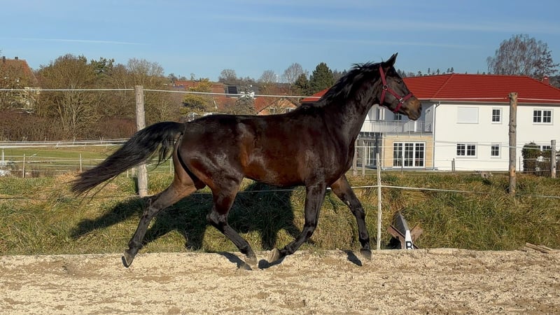 Diese dreijährige, großrahmige und sehr typvolle Stute „Bailarina“ überzeugt durch ihre erstklassige dressurbetonte Abstammung sowie einen außergewöhnlichen Mutterstamm. Sie stammt ab von Bailador x Dacaprio und vereint moderne Dressurgenetik mit bewährter Leistungsstärke. Die Mutter hat selbst Dressurpferdeprüfungen in Klasse A gewonnen und stammt aus einem herausragenden Stutenstamm. Besonders hervorzuheben sind die Vollgeschwister der Mutter, FBW Dejavu (Gewinnerin des Bundeschampionats 4jährig, Platz 4 bei der WM der jungen Dressurpferde, bis S), Däumeling (DRE S), und Flavio (bis DRE S*****, für Großbritannien), alle erfolgreich bis zur schweren Klasse. Der leistungsgeprägte Stutenstamm liefert seit Generationen internationale Dressurpferde bis zur schweren Klasse und zahlreiche gekörte Hengste. Ein Nachkomme der Mutter steht noch im Familienbesitz, ist aktuell bis Klasse L erfolgreich platziert und lässt bereits jetzt vielversprechendes Entwicklungspotenzial erkennen. Die Stute wurde bewusst schonend und pferdegerecht ausgebildet. Sie wurde bislang an der Hand und Longe gearbeitet und durfte den Sattel bereits stressfrei kennenlernen. Dies bietet beste Voraussetzungen für eine nachhaltige weitere Ausbildung. Mit ihrer Bewegungsqualität, ihrem korrekten Fundament und dem herausragenden Mutterstamm bringt sie alles für den gehobenen Dressursport mit und ist zugleich eine hochinteressante Perspektive für die Zucht. Im täglichen Umgang präsentiert sie sich brav, ausgeglichen und unkompliziert. Sie ist schmiede- und verladefromm. Ein qualitativ herausragendes Nachwuchspferd für Ausbilder, ambitionierte Reiter oder Züchter, die Wert auf Genetik, Nachhaltigkeit und langfristige sportliche Perspektive legen.