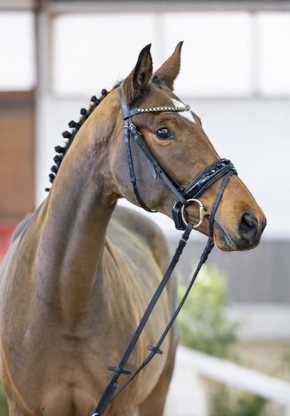 Zum Verkauf steht eine 3-jährige, großrahmige Dressurstute mit bewährter Dressurabstammung.