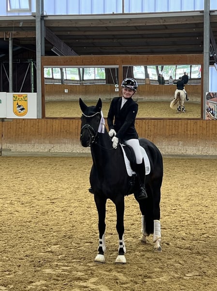 Aus persönlichen und zeitlichen Gründen trenne ich mich von meiner 7-jährigen For Romance x Laudabilis Stute. Stockmaß bei 167cm. Ein liebes Pferd mit viel Talent für Piaffe. Vorne M platziert, gutes Go! Zuhause in der Halle etwas vorsichtig mit anderen Pferden, auf dem Turnierplatz aber unerschrocken. Sie kennt Hunde, Hoflader, andere Pferde, Kinder (auch im Sattel), Longieren, Ausreiten, Stangenarbeit, Führanlage, Kandare usw. Ich wünsche mir für sie ein schönes Zuhause mit viel Ausgang. Bitte nur ernsthafte Anfragen. Ein Probereiten wird mit 40€ berechnet. Diese werden beim Kauf anschließend natürlich verrechnet.