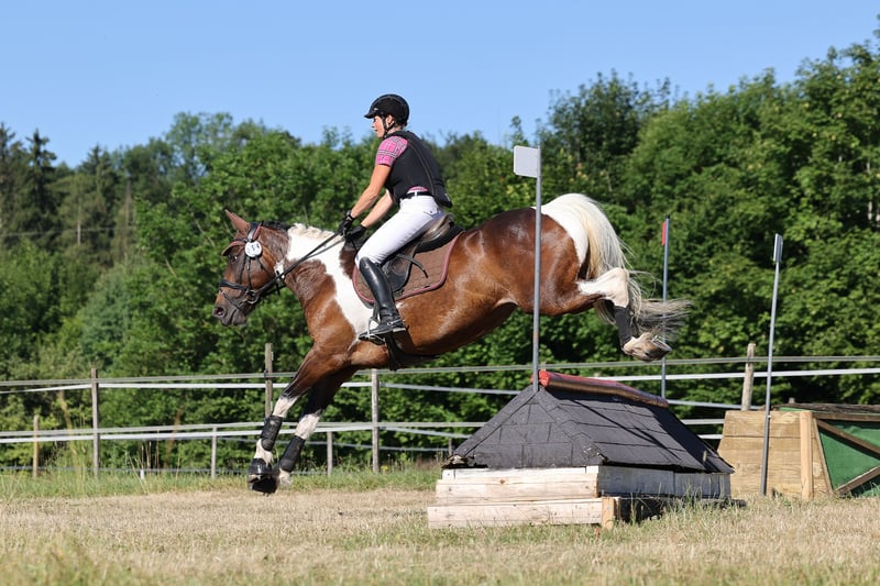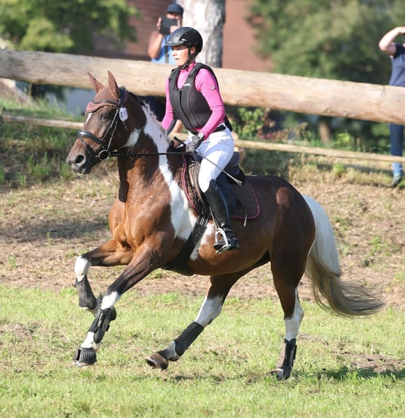 German Riding Horse – Versatile Pinto Mare For sale is a beautiful pinto mare named Roxy (Duke's Coloured Symphony), born in 2016. With a height of 164 cm, she is the ideal partner for versatile riding activities and is suitable for both leisure and competition. Roxy impresses visually with her striking pinto coloration and her friendly disposition. She is well and, above all, realistically trained and shows great promise in eventing and dressage. Her balanced temperament makes her interesting for both experienced riders and ambitious newcomers. The mare is very well-behaved in handling, always manageable, and has already gained experience on all stages. This season, she was introduced to competition and surprised us with her incredible confidence, calmness, and willingness to perform. She won all 5 cross-country tests with excellent scores ranging from 8.0 to 8.6 and is now ready to excel in the upcoming season in the VA! She has also been awarded up to 8.0 in show jumping and A-level dressage. In show jumping, she has never refused and always wants to jump, whether it's water, ditches, trakehner, colorful obstacles, or fluttering banners. She has inherited the heart and incomparable attitude of her mother, Campari, and the athletic constitution of her father, the successful eventing stallion, DUKE OF HEARTS XX. She is healthy, regularly vaccinated, dewormed, and well-behaved for the farrier and loading. Roxy is very dear to me, and I want her to be placed in a loving home. It is very important to me that she continues to be developed realistically and fairly, with fun, joy, and fairness for this wonderful horse.