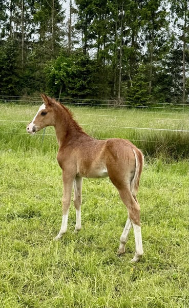 Kolorowa, rzucająca się w oczy klacz źrebak Wszechstronnie hodowana, szuka jeszcze swojego ulubionego człowieka Spodziewana wysokość w kłębie 1,64 - 1,68 m Rodowód: Alle Fraben x Arcachon NRW x Farewell x Florestan Z linii Nizza (Be my Dancer / Beckmann) Lokalizacja: Północne Niemcy