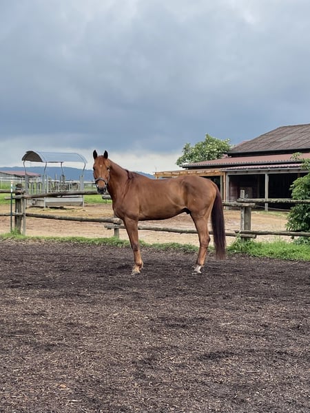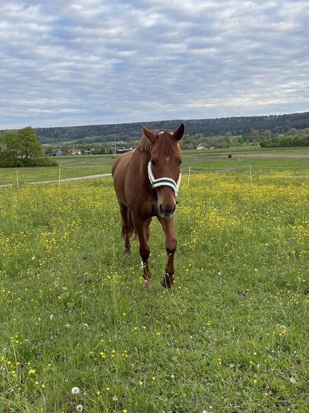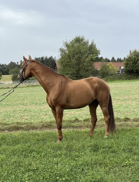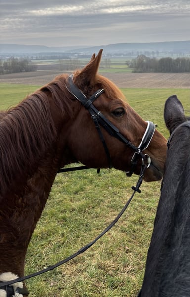 **Sales Advertisement: German Riding Horse** For sale is my beautiful gelding, born in 2011. He is an elegant chestnut with a height of 172 cm, suitable for leisure riding. He is a very people-oriented, affectionate horse that seeks closeness to his human and holds a mid-ranking position in the herd (initially lower, but he works his way up). In spring 2025, he was diagnosed with a lung condition, which we have since managed. He does not require medication, but it is essential for him to be kept in a well-ventilated stable (preferably an open stable). I am looking for a lovely home for him where he can play with his buddies, where he will be loved, and where he can go out on trails. He is definitely fully usable in this regard. Due to the longer break, he currently lacks fitness and muscle. If one wants to include groundwork, training must start again with the basics – this is much easier on a larger arena or in a hall than on a small, dusty surface, which causes him to roll and start coughing. He does not show these symptoms out on trails. Aside from his lungs, he is completely healthy and in very good condition. He is very alert and can react spookily in some situations, so he is not suitable for beginners. I have received the go-ahead from the veterinarian to start working with him again. He was never completely out of work but was only ridden out every third day for his comfort. Currently, my family situation is changing, which prevents me from giving him the attention he deserves. He stands by the fence every day wanting a job. He is barefoot but has also had shoes before. Home before price is important to me; I just want to ensure he finds a good home. If you are interested or have further questions, I look forward to your message!