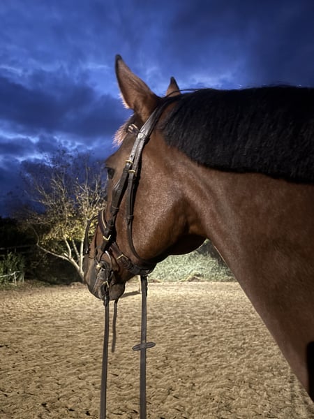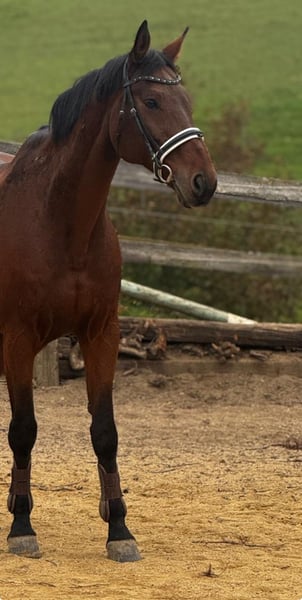 Due to a change in my equestrian plans, I am selling my well-behaved and well-trained 14-year-old gelding, who stands 1.76 meters tall. I have competed with him in show jumping competitions for the past two and a half years. Up to 95 cm, there are no issues. When it gets higher, he tends to check his footing, so it requires a confident rider to handle that. My daughter rides him both in the arena and in the field. He is very uncomplicated. If he gets scared or startled by something, he simply stops and observes, then continues without any problems. Unfortunately, he is too big and too much horse for my daughter for dressage training. He is a true leisure partner; you can do everything with him—trail riding through water, riding without a saddle, lunging, even beginners—he is always attentive and very affectionate. I am looking for a home where he is appreciated as a leisure partner rather than a sport horse. Lavendel is currently in a mixed herd and ranks low in the social hierarchy. I sold him 1.5 years ago, but after he got injured in his new environment and was no longer the horse I knew, I immediately bought him back and cared for him lovingly, so he is now back to his old self. More details can be shared during a personal meeting. If interested, please send a message, and I will get back to you immediately. Absolutely priority is finding a good home over price.