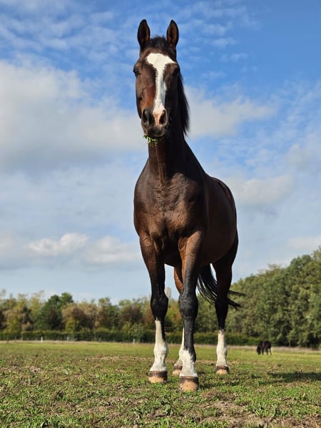 Ik ben op zoek naar een nieuw en liefdevol thuis voor Bobby (bijnaam). Bobby is zeer braaf en makkelijk te rijden, en in de omgang erg vriendelijk, wat hem tot een geweldige partner maakt, ook voor overstappers of recreatieruiters. Hij is altijd gemotiveerd, of het nu tijdens training is of op een concours. Bobby is absoluut betrouwbaar in het terrein en geniet van lange buitenritten, waarbij hij altijd rustig en alert blijft. Hij is zeer goed te hanteren met andere paarden. Momenteel staat hij op een hengstenweide, maar hij kan ook goed uit de voeten in gemengde groepen. Vanwege tijdgebrek verkoop ik mijn langjarige vriend met pijn in het hart en wil ik hem alleen in echt liefdevolle handen geven.