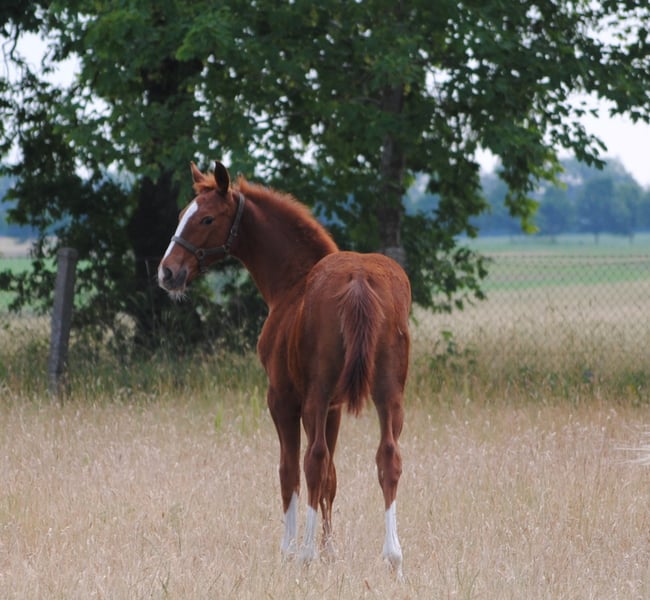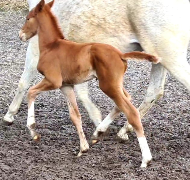 Jako zwiastun wiosny kolorowy lis otworzył tegoroczny sezon źrebiąt. "Mon Ami" Le Chevalier i Marjellchen v. Marduc zaskoczyły wszystkich. Co za mocny fundament, co za doskonałe mocowanie szyi, a następnie ogromny rozmiar. Z energią życiową w kilka minut po urodzeniu na nogach i na wymieniu, więc pierwsze wrażenia. Po dwóch dniach najmłodszy syn 20-letniej córki Marduc poszedł o jeden lepiej na swoim pierwszym spacerze, w którym pokazał ruchy najwyższej jakości. Galop pod górę, który zasługuje na to oznaczenie i akcentowane kolana momenty kłusowania, które sprawiają, że wiele można się spodziewać. Oczywiście koneserzy od razu rejestrują pożądany chów wsobny na naszym byłym głównym reproduktorze Marduc, co przyniosło tu widoczny sukces. Marjellchen, która otrzymała nagrodę stowarzyszenia na ZfdP jako federalna klacz wystawowa w Altefeld, będzie prawdopodobnie jedną z ostatnich aktywnych córek hodowlanych Marduca. Jej syn "Mon Ami" jest obecnie zarejestrowany jako niemiecki szlachetny koń krwi w ZSAA. Z niecierpliwością czekamy na ocenę. Niezwykłe jest jego wielkie podobieństwo do ojcowskiego przyrodniego brata Lamiro, którego niestety musimy wychowywać bez matki.
