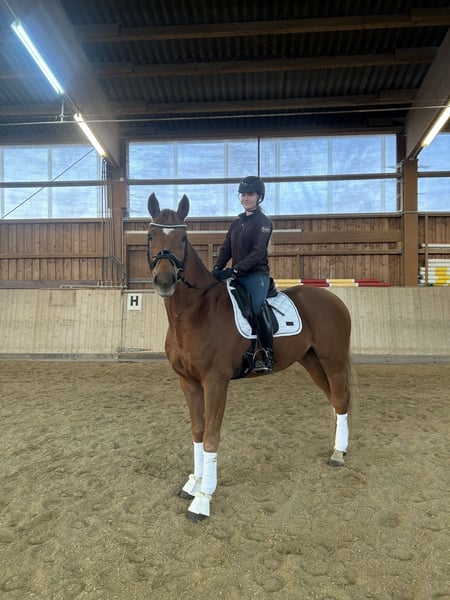 Zum Verkauf steht ein bildhübscher Fuchswallach, geboren im Jahr 2020. (Video aktuell, März 2026!) „Herzi“ ist auf einem sicheren Dressurpferde A Niveau, L-Lektionen begonnen (im Grunde alle vorhanden). Er kennt Anhänger, Waschplatz, Putzplatz, Koppel, Gelände, Reitplatz, Turnier… Dank seines altersgerechten Entwicklungsstands eignet er sich ideal für ambitionierte, erfahrene Reiter, die einen talentierten Nachwuchssportler mit drei ansprechenden Grundgangarten suchen. Herzi benötigt jedoch eine konsequente, erfahrene Hand, mit der er sich noch weiter entwickeln kann. Da ich ihm diese nötige Zeit, aufgrund meines beginnenden Abiturs, nicht mehr gewährleisten kann, gebe ich ihn in gute Hände ab. Ein passender Sattel und seine Trense können bei Bedarf auch mit abgegeben werden. Der Wallach ist gesund, wurde regelmäßig entwurmt und geimpft. Herzi hatte Ende 2025- Beginn 2026 eine leichte Sehnenscheidenentzündung (weshalb er jedoch nie gelahmt hat oder Ähnliches), trotzdem hab ich ihn mehrere Wochen Pause gegeben, es ist alles verheilt (Ultraschallbilder vorhanden) und Herzi hatte und hat keinerlei Beeinträchtigungen. -> alles nach tierärztlicher Absprache Bei Interesse oder für weitere Informationen gerne bei mir melden. Eine Besichtigung und Proberitt sind nach Absprache möglich.