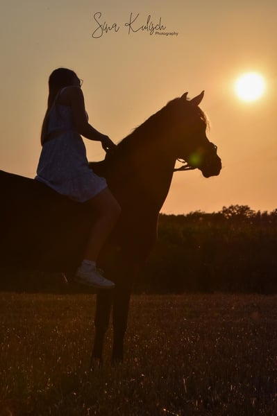 Zum Verkauf steht wegen Umstiegs auf ein Großpferd unser Reitponywallach Dante. Ursprünglich als Dressurpony gezogen, freut er sich trotzdem über ein paar kleine Sprünge zur Abwechslung. Aufgrund seines edlen, schmalen Exterieurs ist er kein Gewichtsträger. Dante geht sowohl alleine und in der Gruppe ins Gelände und hat bereits erfolgreich Turniererfahrung gesammelt. Auch in fremden Hallen und auf fremden Plätzen lässt er sich problemlos reiten. Er ist verlade- und schmiedefromm, im Umgang freundlich und seinem Menschen sehr zugewandt. Dante möchte fair und fein geritten werden. Unter dem Sattel kann er gelegentlich umweltorientiert sein, ist dabei jedoch nie böse. Das Pony ist kein reines Kinderpony; ein Mutter-Tochter-Gespann können wir uns gut vorstellen. Dante ist regelmäßig geimpft, die Zähne werden jährlich kontrolliert und Osteopathie ist ihm bekannt. Er besitzt einen auf ihn angepassten Dressursattel (16,5 Zoll), den er nach Möglichkeit gern mitnehmen würde, in sein neues Zuhause. Bei weiteren Fragen stehe ich gerne zur Verfügung.