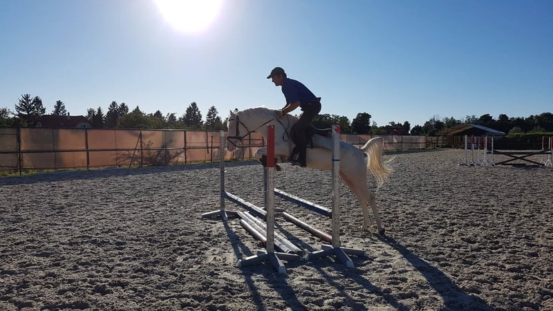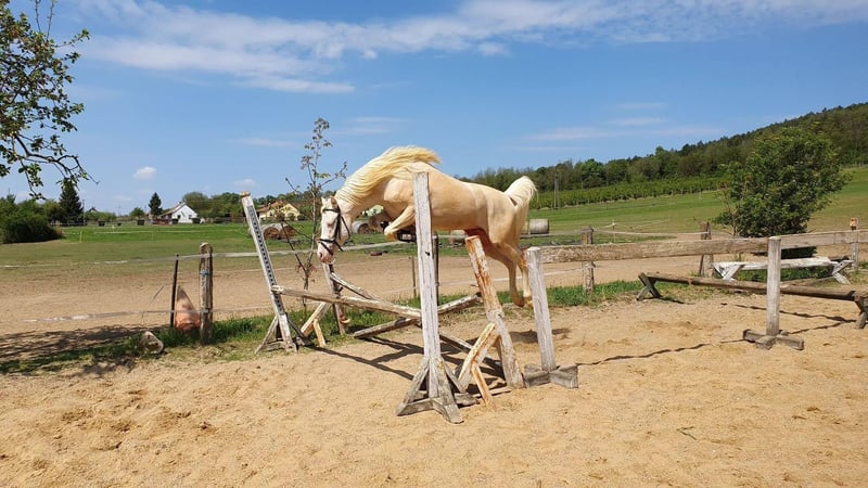 Ich biete meinen cremellofarbenen Ponyhengst mit außergewöhnlich gutem Springvermögen zum Verkauf an. Ich hoffe, dass er ein liebevolles neues Zuhause findet und auch in Zukunft viele Erfolge erzielen wird. Er hat seine Hengstprüfung beim Royal Belgian Palomino Verband erfolgreich abgelegt. Nachts steht er im Stall, tagsüber bewegt er sich frei auf einer großzügigen Weide, wo er die Sonne und den Schatten des Waldes genießen kann. Falls jemand ihn nicht als Hengst weiter halten möchte, kann die Kastration auch auf unserem Hof durchgeführt werden. Beim Transport kann ich ebenfalls helfen und diesen zu einem günstigen Preis organisieren.