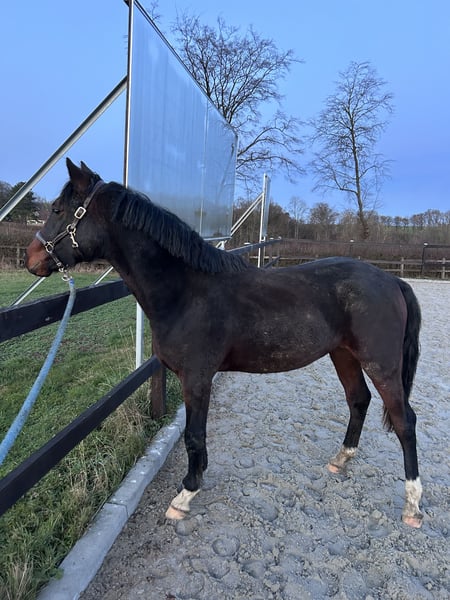Zum Verkauf steht dieser traumschöne dunkelbraune Hengst vom Erfolgshengst Darf ich Bitten NRW, dem er auch wie aus dem Gesicht geschnitten ist. Er ist im März 2024 geboren und war stets täglich in der Hand, kennt dementsprechend alles, ist super lieb und gut erzogen im Umgang. Er kennt sowohl 24 Stunden Weidehaltung im Sommer sowie Boxenhaltung im Winter bei täglichem Weidegang. Er ist mit Warmblütern sowie mit anderen Ponies unterschiedlichen Alters (Hengste und Wallache) verträglich und sozial. Selbstverständlich kann man ihn führen, putzen, anbinden, abduschen, Hufe auskratzen und ohne Probleme dem Schmied vorstellen. Er war immer top gesund, beide Hoden sind da. Aufgrund der top Mutterlinie, aus der bereits ein gekörter Hengst und diverse erfolgreiche Sportponies kommen, ist er sowohl als Hengstanwärter für die Körsaison 2026 als auch als Sport- oder Freizeitpony super interessant. Dougie kommt aus liebevollem Zuhause und wird hier gehegt und gepflegt, ein solches zu Hause soll er auch in Zukunft haben. Selbstverständlich kann er jederzeit nach Absprache besichtigt werden.