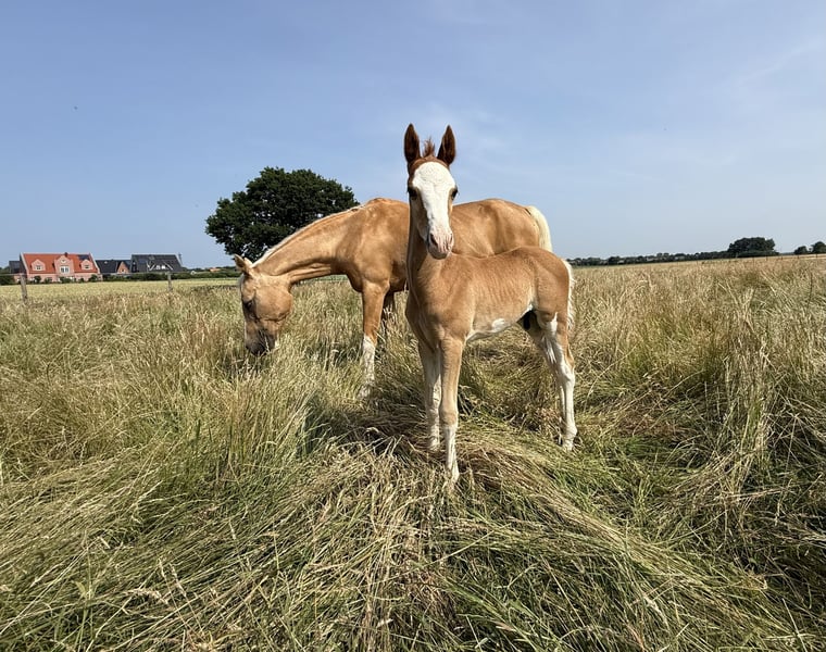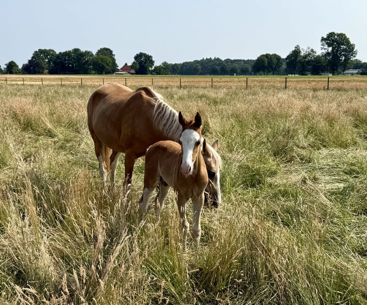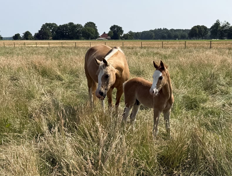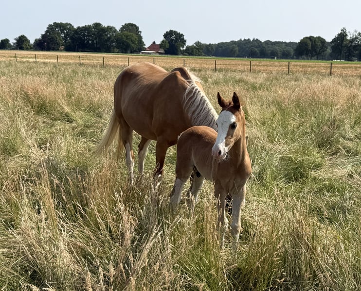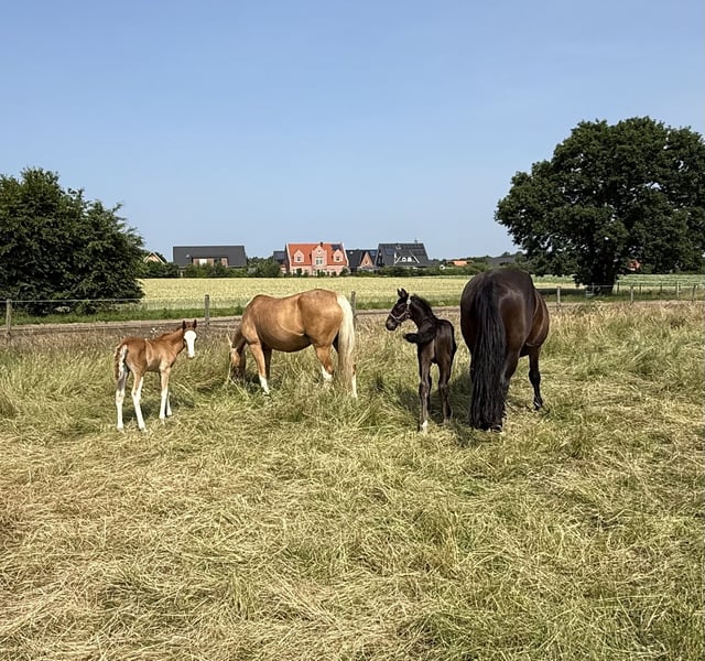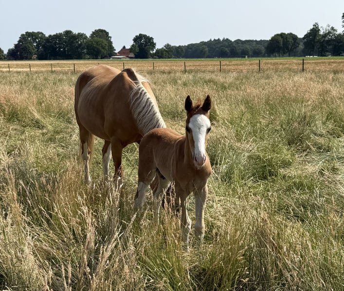 For sale is a promising riding pony foal with excellent potential for leisure and sport, a real eye-catcher in a striking colorful chestnut coat and a promising future! This foal impresses with: - Three outstanding basic gaits with a particularly ground-covering walk, elastic trot, and uphill canter - ✨ Very good conformation – correctly built, harmonious in body, and with an expressive appearance - Great temperament – friendly, strong nerves, people-oriented, and eager to learn It is ideally suited for ambitious leisure riders who are looking for a talented young pony with the best qualities for dressage and possibly also jumping. Raised with love, it is now ready to find a nurturing home. Key data: ‣ Colt, born 2024 ‣ Expected final height (approx. 1.45 m) ‣ Sire: Silas – unregistered riding pony stallion by Socrates ‣ Dam: State premium mare by Ricardo Go for Gold x Vilas Origin & Pedigree: His lineage combines well-known performance and rideability lines: The grandfather Socrates impresses with modern lineage, excellent movements, and an absolutely convincing temperament. The mother, a performance-tested state premium mare, comes from the proven combination of Ricardo Go for Gold x Vilas and brings not only quality in conformation but also top character and joy of movement. Our colt at a glance: ✅ Expressive type with a special charisma ✅ Excellent basic gaits – relaxed, lively, and elastic ✅ Very trusting, people-oriented & open-minded ✅ Character-wise a treasure – attentive, friendly, and calm ✅ Best prerequisites for leisure, dressage, jumping & later competition sports Whether for ambitious leisure riders or young people with competition ambitions – this pony has everything it takes to become a true partner for life. Location: Dötlingen Contact & further information: 015228008206 The little guy can be viewed and met by appointment. Secure this promising youngster with a dream pedigree and the best character now!