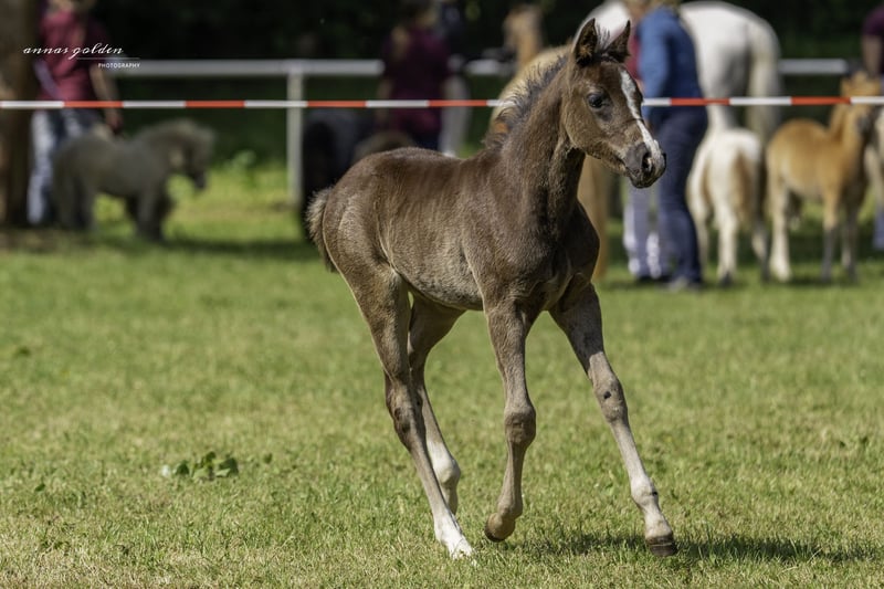 For sale: German Riding Pony stallion foal – Championship foal, born on 28.04.2025 This foal is lovingly raised and is well-socialized. Darius is approachable and curious. By the time of transfer in October/November, he will have mastered the foal ABC. He was awarded as a Championship foal at the foal show. If you are interested or have any questions, please feel free to contact me. Viewings can be arranged by appointment.