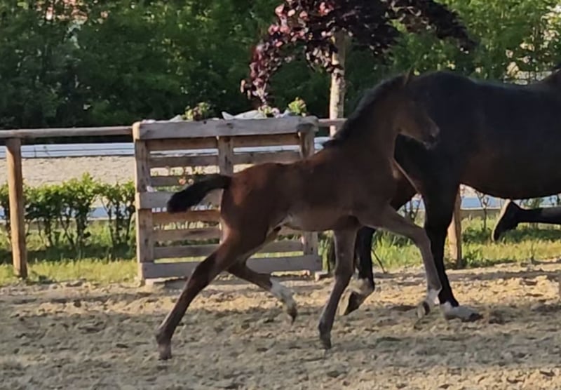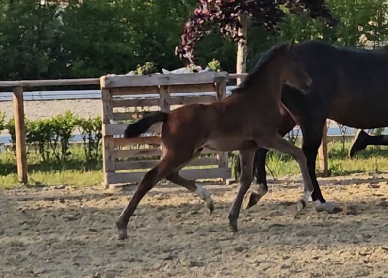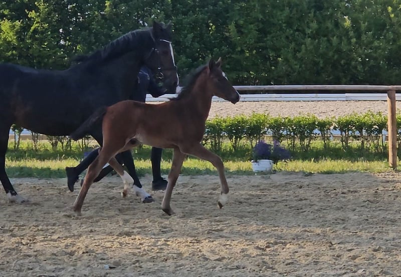 Hf met alle mogelijkheden, zowel sport als recreatie. Zeer charmante hengstaanbieder. Uit een top moederstam, moeder zelf succesvol in de sport met een merrietest in springen met een 9,5 voor rijdbaarheid met een 9. Beweegingscijfers ook tot 8. Zelf winnares van de Landesponyschau.