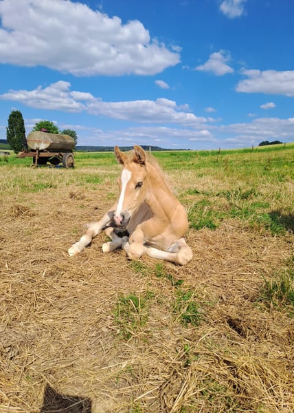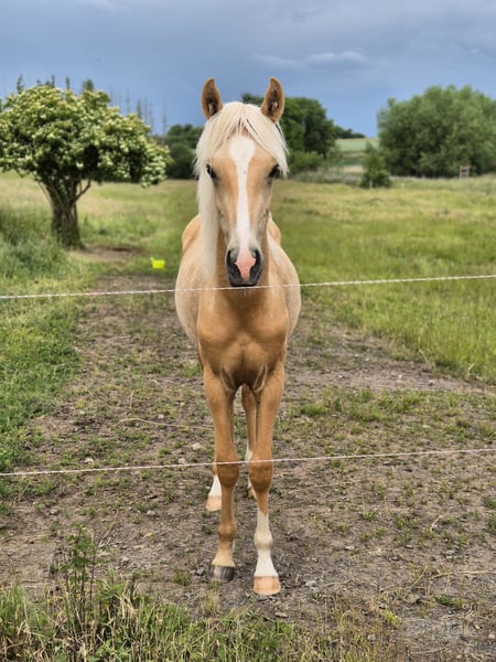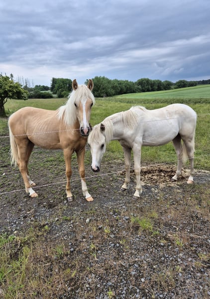 Verkaufe deutsche Reitpony Hengste – Palomino, geb. 2024 Zum Verkauf stehen zwei wunderschöner deutsche Reitpony-Hengste, geboren im Jahr 2024. Mit einem geschätzten Stockmaß von 155 cm ist er perfekt für den Dressursport geeignet und zeigt viel Potenzial für die Zukunft. Seine Mutter ist 1,57m, sein Vater ist ein Endmaßpony und er ist aktuell schon sehr groß (ca 1,42m). Der hellere hat den selben Vater und seine Mutter ist 1,50m. Der junge Hengst ist gut aufgezogen, freundlich im Umgang. Er besitzt eine elegante Erscheinung, ist lieb und freundlich im Umgang (kein treten oder beißen) und zeigt bereits erste vielversprechende Bewegungen. Ideal für ambitionierte Reiter, die einen talentierten Nachwuchspferd suchen oder als Familienpferd. Bei Interesse und für weitere Informationen stehe ich gerne zur Verfügung. Besichtigung nach Vereinbarung möglich.