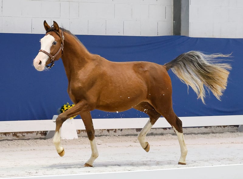 Nella nostra collezione trovi giovani selezionati per tutte le esigenze: pony da addestramento, da allevamento e per bambini. Qui puoi accedere all'intera collezione: https://ponyforum.auction Cunterbunt si presenta in una colorazione eccezionale, figlio del vincitore L FS Clarimo. La madre StPr New Style è una sorella del celebre stallone approvato Double Cream, che attualmente può vantare successi in dressage nella classe M.