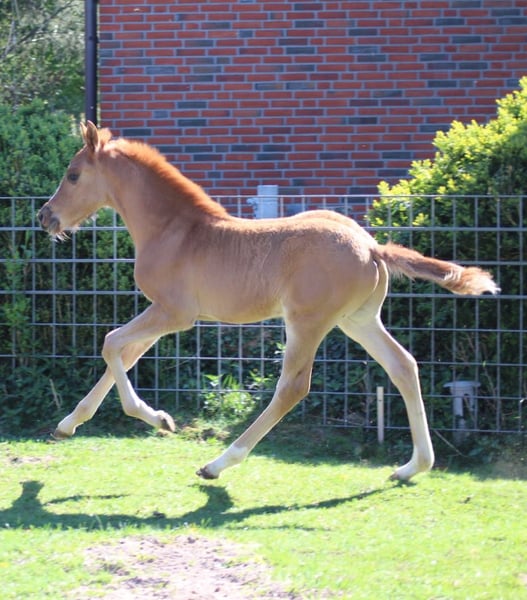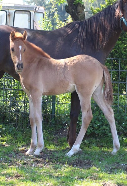 Dieses wunderschöne Hngstfohlen in der Farbe Fuchs Falbe ist charmant , bewegungsstark und Mit sehr guten Exterieur ausgestattet, Am 13.3. 2025 geboren. Er ist mit 3 ausgesprochenen guten Grundgangarten ausgestattet, zeigt sich im besten Hengsttyp und ist im Umgang sehr brav ein Hengstanwärter par exzellente. Wir freuen uns auf Besuch.