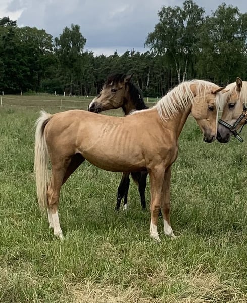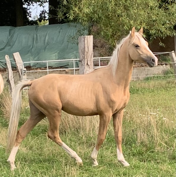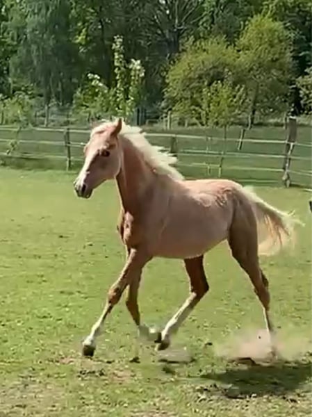 For sale advertisement: German Riding Pony, Stallion, Palomino We are offering a beautiful German Riding Pony stallion for sale. Born in 2024, this magnificent palomino stands out with his impressive appearance and friendly nature. With a height of 148 cm, he is an ideal partner for both youngsters and smaller adults. His golden coat color, typical for Palominos, attracts everyone's attention and makes him stand out in any riding arena. This stallion is not only a visual highlight, but also a real sporting talent. He has been trained in dressage and is already showing promising abilities. His movements are flowing and elegant, his willingness to learn and his concentration make training with him a pleasure. This stallion is a real treasure who is sure to delight his new owner with his lovable nature and dressage potential. He is ready for new challenges and is waiting for a loving home where he can further develop his skills. If you are interested in this fantastic German Riding Pony stallion, please do not hesitate to contact us. We look forward to your inquiry.