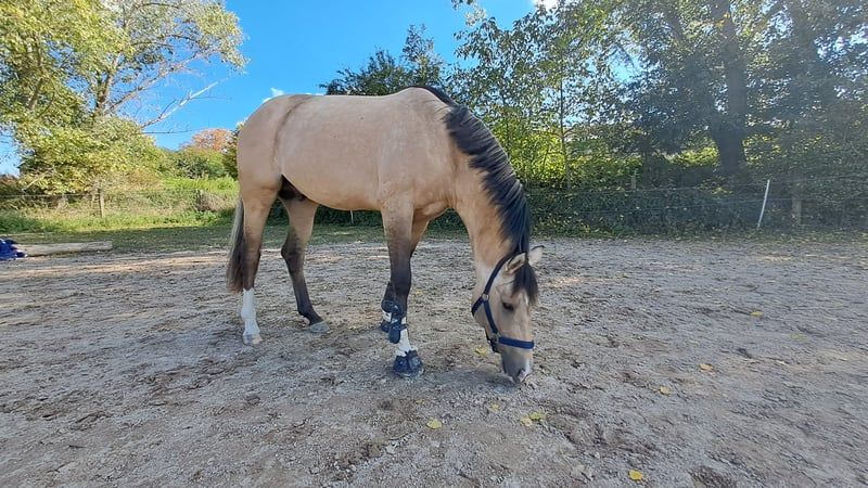 Goldstern ist ein 2023 geborener Reitponyhengst. Er stammt ab vom Gold Garant aus einer Blind Date AT Mutter. Er ist 1,49m groß. Er verfügt über 3 sehr gute Grundgangarten und macht einen sehr guten Job am Sprung und in der Reihe beim Freispringen. Er ist sehr brav im täglichen Umgang und bei der Arbeit. Momentan ist er longiert. Er ist sehr unkompliziert, kann neben Stuten im Stall und auf Koppel stehen, lässt sich allein verladen und ist unglaublich liebevoll. Er wurde zur mitteldeutschen Körung gekört. Bei Interesse bitte melden. 017620008189
