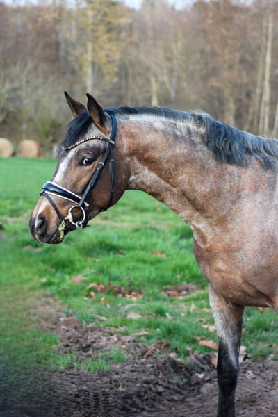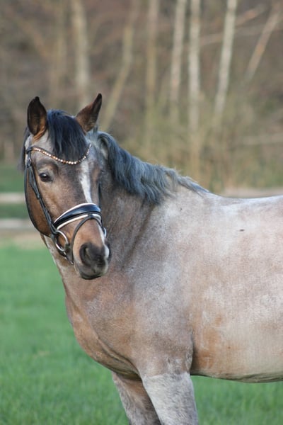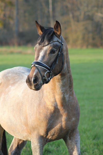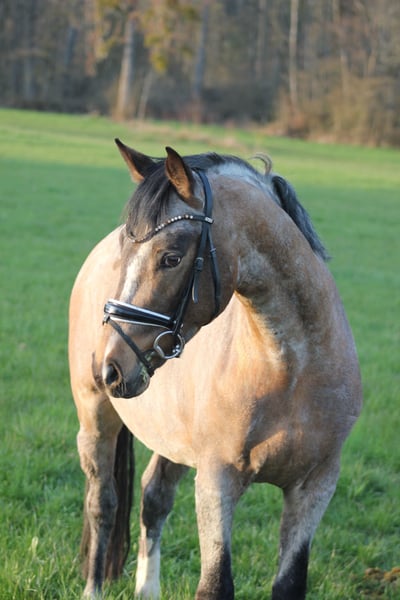 With a heavy heart and solely due to lack of time, we are offering our self-bred riding pony stallion for sale. *Born February 2, 2023 LH Nonplusultra DW (FS Numero Uno) x Cassini x Golden Dandy x Valido x Brillant 14.6 hh Buckskin Roan Noui impresses not only with his extraordinary color but, above all, with his impeccable character and excellent basic gaits. From the very beginning, he has proven to be very human-oriented, well-behaved in handling, and easy to manage in daily routines. He has a good conformation and stands correctly on his legs. As a foal, he was already awarded the Gold Foal prize. He shows no stallion behaviors and currently gets along effortlessly with a mixed herd of geldings in an open stable, demonstrating very social and tolerant behavior. He is regularly handled by the farrier, fully vaccinated, and currently being lunged on a long rein. He has already demonstrated his talent in free jumping, clearly reflecting the aptitude of his sire, who has proven himself equally in dressage, show jumping, and eventing. For us, he would have been an interesting candidate for breeding, but unfortunately, there is not enough time. A veterinary examination can be arranged at the buyer’s expense; he has never been lame or ill with us. We wish for him a loving home where he can be further nurtured and realize his full potential.