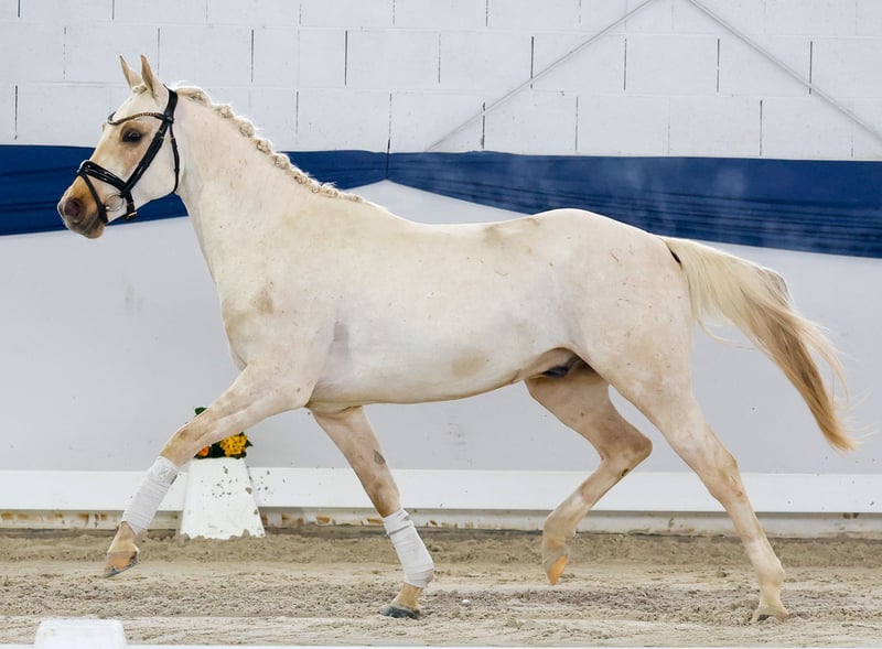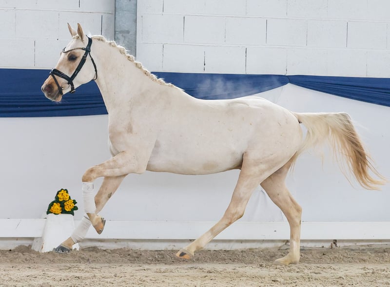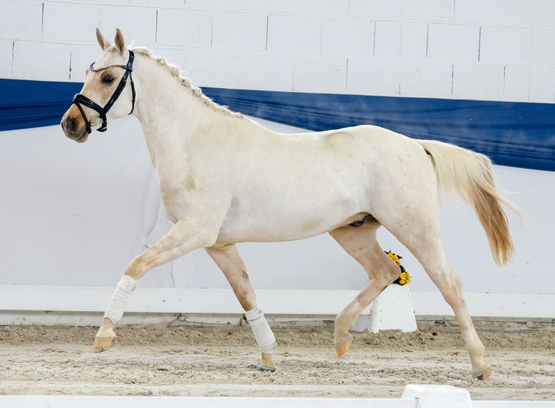 In unserer Kollektion stehen streng selektierte Youngster f�r alle Anspr�che: Ausbildungs-, Zucht- und Kinderponys Hier gelangen Sie zur Gesamtkollektion: https://ponyforum.auction Dieser vierjährige Wallach zieht mit seiner auffälligen Farbgebung sofort alle Blicke auf sich! Er zeigt schon jetzt drei ausgewogen gut Grundgangarten, dabei ist er schön locker und leichtfüßig im Ablauf. Dolomiti lebt in einer WG mit anderen jungen Wallachen zusammen, kann aber auch unproblematisch einzeln gesteltl werden. Er kennt Longenarbeit und den Sattel auf seinem Rücken. Im Pedigree dieses Goldpalominos reihen sich erfolgreiche Dressurponys aneinander! Einige Geschwister der Mutter nahmen schon am Bundeschampionat teil, sind erfolgreich im Dressurviereck bis zur Klasse M usw. Über den Vater fließt das Blut der top Vererber Dance Star AT NRW und Danny Gold in den Adern dieses vielversprechenden Youngsters!