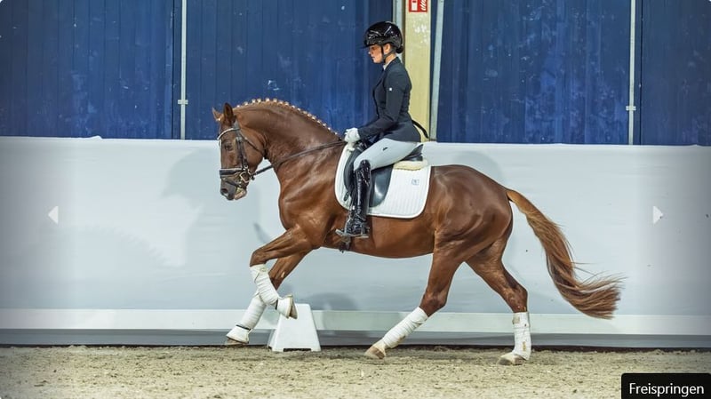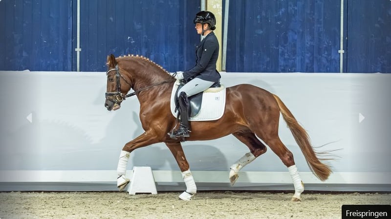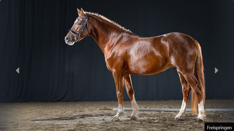 Hesselteichs Gilbert wurde 2023 in Verden gekört und konnte sich bereits früh erfolgreich im Turniersport präsentieren. In Reitpferdeprüfungen überzeugte er mehrfach mit vorderen Platzierungen – auch im direkten Vergleich mit Großpferden. Seine Qualität, Rittigkeit und Bewegungsstärke machen ihn zu einem vielversprechenden Nachwuchspferd für Sport und Zucht. Sein Vater Gandalf vereint in seinem Pedigree die beiden renommierten Ponyvererber FS Golden Highlight und Going East, die sowohl im Sport als auch in der Zucht hochkarätige Erfolge vorweisen können. Die Mutter N’ypense pas hat ihre Vererbungskraft eindrucksvoll unter Beweis gestellt: Sie brachte bereits einen gekörten Sohn sowie zwei Staatsprämientöchter hervor. Ihre Nachkommen sind im Turniersport erfolgreich bis zur Klasse L in der Dressur. Alle weiteren Infos hier: https://auction.pferdezucht-rheinland.de/auctions/df7dab23-9e97-425e-159a-08de37f66d98/item-details/3b26102c-8464-4db5-7ebe-08de414ebd33