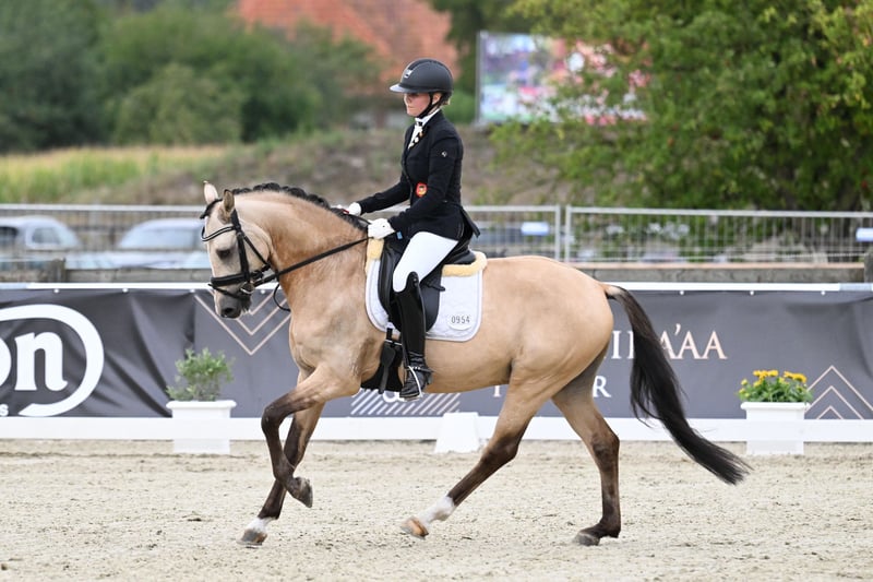 **Sales Advertisement: German Riding Pony Stallion** For sale is a beautiful German Riding Pony stallion, born in 2019. With his striking buckskin coat and a height of 14.2 hh, he is not only a real eye-catcher but also a talented partner for dressage. This stallion impresses with his excellent movements and eagerness to learn. He is well-mannered, well-educated, and shows great potential for dressage sport. Ideal for ambitious riders looking for a reliable and talented pony. www.gestuet-boenniger.de He is suitable for both recreational riding and competition and is ready to start his journey with a new rider. If you are interested or need more information, please feel free to contact me. Viewings are possible by appointment. We look forward to your inquiry!