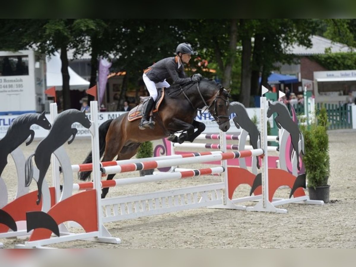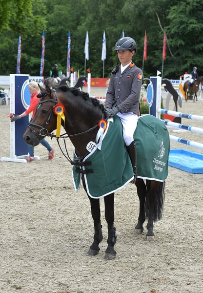 Captain Meyer WE has everything that is required in riding pony breeding: rideability, willingness to perform, a balanced temperament, excellent basic gaits (GGA) and an optimum size. These qualities make him an exceptional sire. His sire, Calido G, impressed early on: in 2008 he was premium stallion at the Weser-Ems licensing, and in 2010 he completed his stallion performance test with an outstanding 9.18 points. In 2011, he was honored as a federal premium stallion in Berlin, and in 2013 he was the champion stallion of Weser-Ems - an unparalleled success story. Calido G has also produced numerous licensed offspring, including several reserve winners and a jumping champion. Captain Meyer's dam, Sternchen, has already produced highly successful offspring, including the medium (M) level dressage series winner "Call me Carlchen", who now competes successfully up to advanced (S) level dressage and Prix St. Georges, as well as "Nala", who impresses in show jumping competitions. Sternchen is also the full sister of "Sunshine", the dam of the licensed stallion "Gold Gelb". The granddam Siera and great-granddam Sina by Captain Meyer WE are also formative figures in the breed: Siera is the dam of the licensed stallion "Hatfield", who is successful in medium dressage competitions, and "Mintano" (Mister Snowman). Sina also produced the licensed stallions "Tribun S" and "Nadir v. Splitte" as well as the successful medium dressage pony "Tomentow". Other licensed sons, state premium mares and successful sport ponies come from this line. The dam's sire Halifax, an elite stallion and sought-after Welsh B stallion, impresses with his quality of movement and outstanding temperament. Captain Meyer WE himself proved his potential early on: as a 3- and 4-year-old, he placed several times in tests for young riding horses and novice (A) level dressage tests against large horses and showed strong performances in free jumping competitions. At the age of five, he achieved numerous placings in novice (A) level tests for young show jumpers, including victories against large horses. In Cloppenburg, he won the qualifier for the Bundeschampionat for 5-year-old jumping ponies under Calvin Böckmann and achieved placings in the elementary (L) level pony jumping competition. For his sporting success, he was awarded the name suffix "WE" by the Weser-Ems studbook in 2015. He continued his successful career in 2016. Under Maike Mende, he qualified for the Bundeschampionat for 6-year-old dressage ponies with a score of 8.2 and also impressed in elementary (L) level show jumping tests. As a 7-year-old, he also shows enormous talent in eventing under Jana Lehmkuhl. In 2019, Captain Meyer WE was nominated for the FN Federal Stallion Show at the Green Week in Berlin, where he triumphed as Federal Champion Stallion Jumping, also became Federal Reserve Champion Eventing and shone as the most successful Westphalian in his age group. Captain Meyer WE is an all-rounder with excellent rideability and reliability. His strengths lie in both dressage and jumping. He proved this at his stallion performance test in Erbach/Hesse and was the best pony with an overall score of 8.3. His performances in free jumping (9.0), show jumping (9.0) and from outside riders (8.5) were particularly emphasized. His offspring are already extremely successful: they consistently impress at foal shows, and in their sporting careers they achieve placings in medium (M) level show jumping competitions and elementary (L) level dressage tests. Captain Meyer WE is now being shown by talented young riders. With his balanced nature and experience, he gives young riders the confidence they need in both show jumping and dressage. He is currently being ridden by nine-year-old Phil Hufenstuhl, who is just starting his show jumping career, and Emma Luise Lindemann, who recently took part in her first show jumping competition with Captain Meyer WE, shone in style and won both competitions. As he has been all his life, Captain Meyer WE is absolutely child-friendly and uncomplicated - both under saddle and in everyday handling.