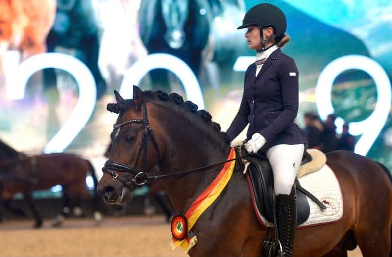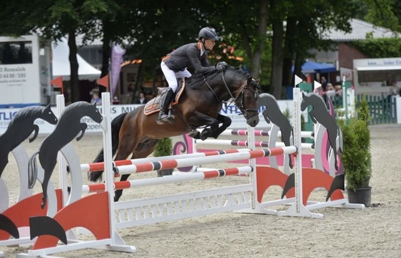Captain Meyer WE a tout ce qu'il faut dans l'élevage de poneys de selle : facilité sous la selle, volonté de performance, tempérament équilibré, excellentes allures de base (GGA) et taille optimale. Ces qualités font de lui un reproducteur exceptionnel. Son père, Calido G, a impressionné très tôt : en 2008, il a été étalon primé lors de l'approbation de Weser-Ems, et en 2010, il a terminé son test de performance d'étalon avec une note exceptionnelle de 9,18 points. En 2011, il a été désigné étalon primé fédéral à Berlin, puis étalon champion de Weser-Ems en 2013 - une histoire à succès qui n'a pas son pareil. De plus, Calido G a produit de nombreux descendants approuvés, dont plusieurs vainqueurs de réserve et un vainqueur de saut d'obstacles. La mère de Captain Meyer, Sternchen, a déjà produit des descendants très performants, dont le vainqueur de série en dressage M "Call me Carlchen", qui court désormais avec succès jusqu'en dressage S et en Prix St. Georges, ainsi que "Nala", qui convainc en épreuves de saut. Sternchen est également la propre sœur de "Sunshine", la mère de l'étalon approuvé "Gold Gelb". La grand-mère Siera et l'arrière-grand-mère Sina de Captain Meyer WE sont également des figures marquantes de l'élevage : Siera est la mère de l'étalon approuvé "Hatfield", qui a du succès en dressage M, et de "Mintano" (Mister Snowman). Sina a notamment produit les étalons approuvés "Tribun S" et "Nadir v. Splitte" ainsi que le poney "Tomentow", qui connaît un grand succès en dressage M. D'autres fils approuvés, des juments primées d'État et des poneys de sport couronnés de succès sont issus de cette lignée. Le père de la mère, Halifax, un étalon d'élite et un étalon Welsh B très convoité, convainc par sa qualité de mouvement et son tempérament exceptionnel. Captain Meyer WE lui-même a prouvé très tôt son potentiel : dès l'âge de 3 et 4 ans, il s'est classé à plusieurs reprises dans des épreuves pour chevaux de selle ainsi que dans des épreuves de dressage de classe A contre de grands chevaux et a montré de fortes performances dans des concours de saut en liberté. À cinq ans, il s'est classé à de nombreuses reprises dans des épreuves de saut d'obstacles de classe A, y compris des victoires contre de grands chevaux. À Cloppenburg, il a remporté la qualification pour le Bundeschampionat des poneys de saut de 5 ans sous la selle de Calvin Böckmann et s'est classé dans l'épreuve de saut d'obstacles pour poneys de classe L. Il a également remporté des épreuves de saut d'obstacles pour poneys de classe A et de classe B. En 2015, ses succès sportifs lui ont valu l'adjonction du nom "WE" par le stud-book des chevaux de Weser-Ems. En 2016, il a également poursuivi sa carrière avec succès. Sous la selle de Maike Mende, il s'est qualifié avec une note de 8,2 pour le championnat fédéral des poneys de dressage de 6 ans et s'est également distingué dans des épreuves de saut d'obstacles pour poneys de classe L. Il a également obtenu la note de 8,2 pour le championnat fédéral des poneys de dressage de 6 ans. À 7 ans, il montre également un énorme talent en concours complet sous la selle de Jana Lehmkuhl. En 2019, Captain Meyer WE a été sélectionné pour le concours national des étalons de la FN lors de la Semaine verte de Berlin, où il a triomphé en tant qu'étalon champion national de saut d'obstacles, a également remporté le titre de champion national de réserve de concours complet et a brillé en tant que cheval westphalien le plus performant de sa catégorie d'âge. Captain Meyer WE est un cheval polyvalent doté d'une excellente aptitude à la selle et d'une grande fiabilité. Sa force réside aussi bien dans le dressage que dans le saut d'obstacles. Il l'a prouvé lors de son test de performance d'étalon à Erbach/Hesse, où il a été le meilleur poney avec une note globale de 8,3. Ses performances au saut en liberté (9,0), au saut de parcours (9,0) et par des cavaliers étrangers (8,5) ont été particulièrement remarquées. Ses descendants sont déjà extrêmement performants : lors des concours de poulains, ils sont toujours convaincants, et dans leur carrière sportive, ils obtiennent des classements allant jusqu'aux épreuves de saut d'obstacles de catégorie M ainsi qu'aux épreuves de dressage en catégorie L. Entre-temps, Captain Meyer WE est présenté par de jeunes cavaliers talentueux. Grâce à son tempérament équilibré et à son expérience, il donne aux jeunes cavaliers la confiance nécessaire, tant en saut qu'en dressage. Actuellement, il est monté par Phil Hufenstuhl, âgé de neuf ans, qui débute actuellement sa carrière en compétition, ainsi que par Emma Luise Lindemann, qui a récemment participé à son premier concours de saut d'obstacles avec Captain Meyer WE, a brillé par son style et a remporté les deux épreuves. Comme il l'a fait toute sa vie, Captain Meyer WE se montre absolument gentil avec les enfants et simple - aussi bien sous la selle que dans les contacts quotidiens.