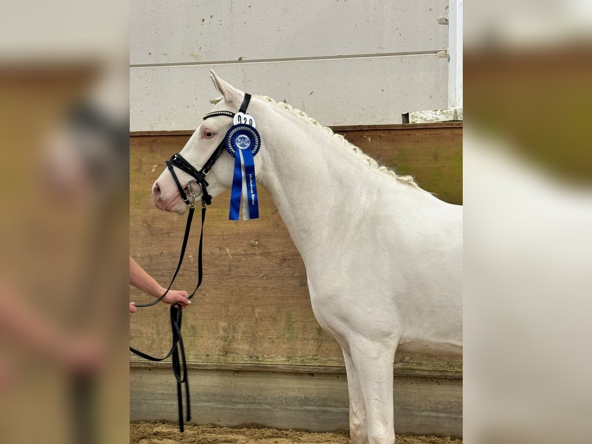 ✨Firstclass Goldrichtig✨ Der 1,47m große Cremello Hengst steht den Ponyzüchtern,in 24594 Remmels,im Natursprung,zur Verfügung. Folgende Abstammung: First Class Golden White x FS Chacco Blue x Champion Abstammungsmäßig überzeugt er auf ganzer Linie: Sein Vater First Class Golden White steht für moderne Typprägung, Rittigkeit und elastische Bewegungen. Mütterlicherseits führt er das wertvolle Blut von FS Chacco Blue, der für Vermögen, Leistungsbereitschaft und Qualität im Parcours bekannt ist. Ergänzt wird diese interessante Genetik durch Champion, der für Bewegungsstärke und bewährte Dressurveranlagung steht. Firstclass Goldrichtig belegte beim Elite-Fohlenchampionat 2023 in Groß Viegeln den 3. Platz in der Kategorie der Reitponyhengstfohlen. Bereits im Dezember 2025 konnte er sich 3. Jährig bei der Mecklenburger Hengstführung mit überragender Bewegung, einem überzeugenden Fundament und seinem ausdrucksstarken Erscheinungsbild präsentieren und wurde gekört. Zudem wurde er aufgrund seiner herausragenden Qualität mit dem Titel Prämienhengst ausgezeichnet. Er ist sogar für alle Verbände zugelassen ! Er deckt im Natursprung direkt vor Ort in Remmels. Für Stuten besteht die Möglichkeit, diese bei uns einzustallen. Es stehen ausreichend Gastboxen zur Verfügung, sodass die Stute bis zur festgestellten Trächtigkeit bei uns bleiben kann. Gerne übernehmen wir in dieser Zeit auch das Tupfern. 🥼 Alternativ ist es selbstverständlich möglich, die Stute zum Decken wiederholt zu uns zu bringen. Decktaxe 450€ im Züchterfreundlichen Splitting Decktaxe 250€ + Trächtigkeitsrate 200€ Bei Interesse gerne unter folgender Nummer 017683741080 anrufen oder eine Nachricht schicken 😃
