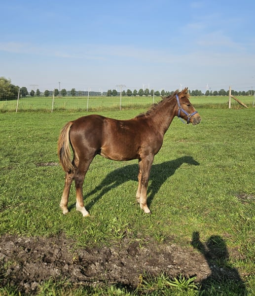 Wir verkaufen unser Reitpony Hengstfohlen von Del Piero II, geboren März 2025. Unser Del Vito lebt bei uns zuhause in einer gemischten Herde. Er ist noch nicht abgesetzt. Er ist lieb im Umgang und für sein Alter gut erzogen. Er hat volles Papier. Der Vater ist das deutsche Reitpony Del Piero II (Hengststation Ahlmann). Del Piero II ist 147cm groß und International erfolgreich bis 130cm im Springen. In Deutschland ist Del Piero II bis M** erfolgreich vorgestellt. Die Mama ist ein Welsh Pony Sek B. (134cm) Del Vito bleibt wahrscheinlich dunkel Fuchs oder er wird sehr spät Schimmel. Bei Interesse kann Del Vito gerne angeschaut werden. Auf den letzten beiden Bildern ist die Mama zu sehen.
