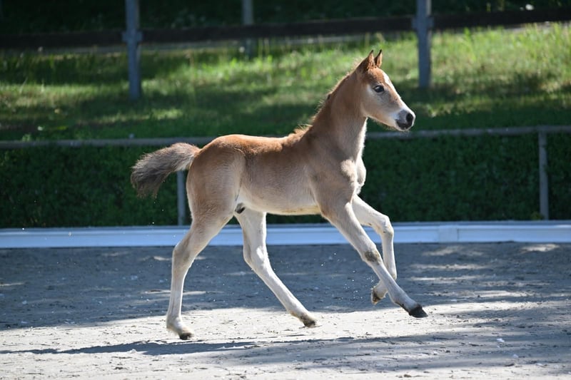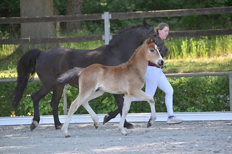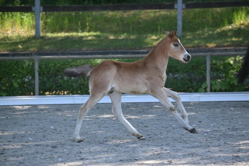 Dieses charmante Hengstfohlen von Quaterback's Junior aus einer Night Dream Mutter zeigt sich mit bestem Charakter und guten Bewegungspotential. Er ist freundlich, neugierig und zeigt sich Menschen gegenüber stets interessiert und gelassen. Er bringt nicht nur Talent für den Dressur- oder Freizeitbereich mit, sondern auch das Potenzial später einmal ein verlässliches, kinderfreundliches Reitpony zu werden.