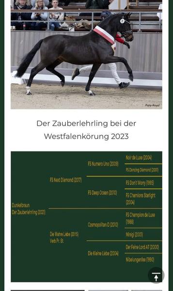 Zwickel Stamm von dem besonderen Hengst Zauberlehrling. Korrekt gebautes Hengstfohlen, mit besten Grundgangarten, ausgezeichnet mit einer Fohlen Prämie. Muttervater ist in Dressuren der Klasse S erfolgreich. Die Großmutter ( das letze Bild)war in Springen bis Klasse M erfolgreich. Zwickel wächst in einer kleinen Familienzucht an der Ostsee unter besten Bedingungen.