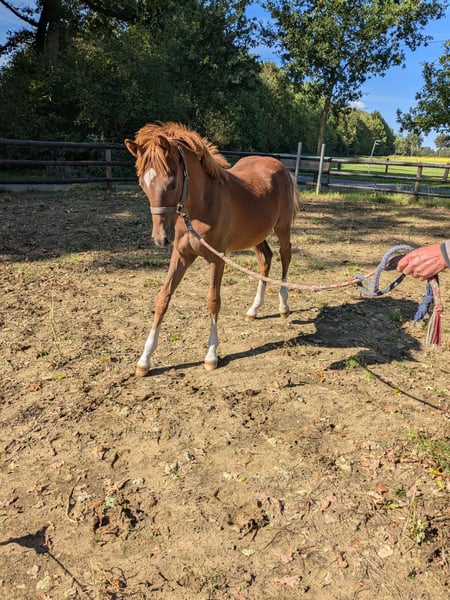 **Verkaufsanzeige: Deutsches Reitpony Hengstfohlen Zum Verkauf steht ein vielversprechender Deutsches Reitpony Hengstfohlen, geboren im Jahr 2025. Dieser Dunkelfuchs überzeugt nicht nur durch seine ansprechende Farbe, sondern auch durch sein hervorragendes Potenzial im Dressursport. **Merkmale:** - **Rasse:** Deutsches Reitpony - **Geschlecht:** Hengst - **Geburtsjahr:** 2025 - **Farbe:** Dunkelfuchs - **Eignung:** Dressur Bei Interesse oder weiteren Fragen stehe ich gerne zur Verfügung. Besichtigungen sind nach Absprache möglich. Lassen Sie sich diese Gelegenheit nicht entgehen, einen talentierten Partner für den Dressursport zu erwerben!