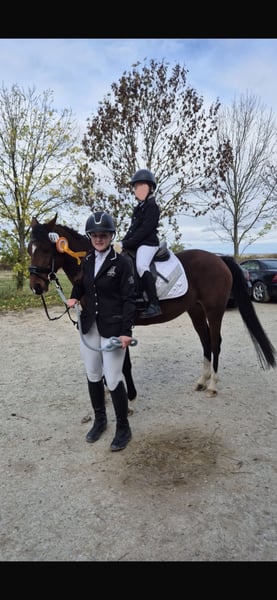 Z ciężkim sercem na sprzedaż wystawiamy utalentowaną klaczkę kucyka o bardzo dobrym charakterze, która codziennie sprawia jej opiekunowi wiele radości. Nie jest ona odpowiednia dla początkujących jeźdźców, lecz poszukuje doświadczonego jeźdźca oraz regularnej, zróżnicowanej pracy i treningu. Kucyk bardzo chętnie skacze i wyraźnie pokazuje potencjał w skokach. Również w ujeżdżeniu jest bardzo chętna do nauki, uważna i szybko przyswaja nowe ćwiczenia. Pracuje z motywacją i wykazuje pozytywne nastawienie do pracy. Jest również spokojna i niezawodna na terenie. Szukamy opiekuna, który codziennie będzie się z nią zajmować, czy to poprzez jazdę, pracę na lonży czy inne ciekawe aktywności. Regularny ruch i trening są dla niej ważne, ponieważ chce się rozwijać i czerpie radość z nauki nowych rzeczy. W ubiegłym roku po raz pierwszy startowała na zawodach i z dużą cierpliwością oraz spokojem świetnie poradziła sobie z nowym wyzwaniem. Pokazała się jako grzeczna, ambitna i chętna do nauki. Dodatkowym atutem jest fakt, że już jako źrebię była wyróżniona prestiżową premią i otrzymała tytuł championatu. Podkreśla to jej wysoką jakość i czyni ją interesującą także dla hodowców, którzy cenią dobre predyspozycje i obiecujący rozwój.