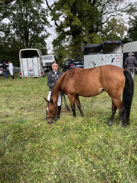 German Riding Pony Mare for Sale For sale is an elegant and talented German Riding Pony mare, born in 2016. She is bay and measures 146 cm at the withers. This mare is ideally suited for dressage and impresses with her refinement, willingness to learn, and pleasant temperament. She is well-trained, reliable in handling, and shows great potential for an ambitious rider. Whether for competition or leisure riding, this mare is a dependable partner. If you are interested or have any questions, please feel free to contact me. Viewing and trial rides can be arranged by appointment.