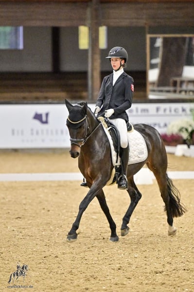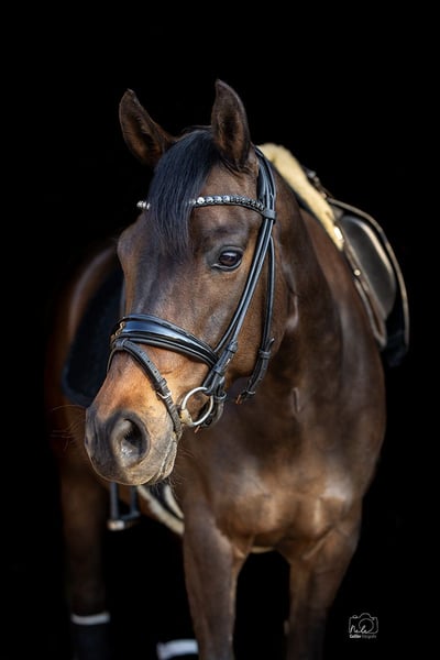For sale is a beautiful, dark brown German Riding Pony mare, born in 2015. With her attentive nature, she is the perfect sport and leisure partner for all riders looking for a talented and hardworking pony. Dressage - Training level: L (Multiple winner in DPA and DRA; placed in DPL, placed in DRL) We bought Grace at the age of 6 from the breeder and continued her training. Due to her sire, Amaryllis Sensation D, she has a talent for eventing. We have trained her with a focus on dressage, but she has always enjoyed jumping in training and loves to go out for rides confidently and safely. At the age of 6, she won Dressage Horse A and was third in her first Dressage Horse L. At 7 years old, she was multiple times victorious with scores of 8 with a 13-year-old rider and won 🥈 at the Westphalian Young Talent Championship Pony Dressage. At 9 years old, she won 🥉 with our 14-year-old daughter at the Westphalian Young Talent Championship Pony Dressage and participated in the final of the Federal Young Talent Championship. At the same time, they placed in their first Dressage Rider L tests. Now our daughter has grown too tall for Grace and has switched to a larger horse. Grace is always hardworking, eager to learn, and reliable in her lessons. She loads easily with our daughter, is experienced in competitions (64 dressage starts - she has also participated in overnight competitions without any issues), and is an absolute ribbon collector. She gets along well with other ponies and horses and is gentle in handling. She brings a lot of experience in the A Championship Tour and potential for the L Tour. There are clinically unremarkable vet check results from 2021. Grace has not been sick or injured since then. Included are a dressage saddle, bridle, and various pony accessories. Please, no inquiries from dealers or intermediaries.