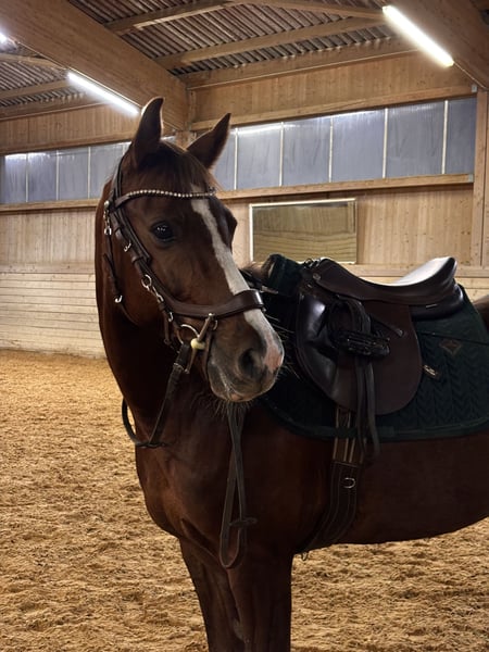 Hallo, ich suche für meine Deutsche Reitpony Stute Toffi eine Reitbeteiligung, die zuverlässig ca. 1 Mal die Woche kommen kann und sich auch gern während meinem Urlaub um sie kümmert. Ich suche jemanden der erstmal nur Dressur und Bodenarbeit wie Longieren etc. macht. Sie ist ein liebes Pony mit einem Stockmaß von ca. 1,46m. Weil sie ein relativ zierliches Pony ist wäre für mich das maximal Gewicht 60kg und von der Größe her maximal 1,65m-1,70m, außerdem hätte ich gerne jemanden der mindestens 16 Jahre alt ist. Toffi ist für jeden Spaß zu haben und blödelt auch gerne einfach nur rum, sie ist trotz dessen kein Anfänger Pferd und testet am Anfang sehr gerne mal, ist aber sonst immer brav und gut händelbar. Ich suche jemanden mit Pferde- und Reiterfahrung der sich auch mal gut durchsetzen kann und ihr Sicherheit beim reiten gibt. Sie steht erst seit ca. einem Jahr aktiv im Training , ist aber sehr Lernwillig und hat Spaß an ihrer Arbeit. Mir wäre es außerdem wichtig, dass auch Regelmäßig Training genommen wird, wir haben an unserem Stall gute Trainer und auch Regelmäßig Kurse. Man kann mit ihr ins Gelände gehen, sie geht aber nicht gern allein, mit anderen Pferden ist es meistens kein Problem. Auf unserer Reitanlage steht eine 20x40m Halle, ein 25x60m Reitplatz und ein Longierzirkel zur Verfügung.