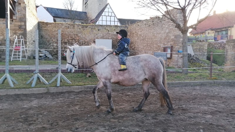 Zum Verkauf steht eine brave und zuverlässige Stute, mit einem Stockmaß von 1,33m, geboren im 06/2012. Niederländischer Pass, ohne Abstammung Sie war stets gesund, einzig ein Kieferbruch im Jahr 2017 infolge eines Weideunfalls ist bekannt und vollständig ausgeheilt. Die Stute ist sehr leichtfuttrig, barhuf und kennt Herden- und Gruppenhaltung. Im Umgang mit Artgenossen zeigt sie sich sehr sozial, findet schnell ihren Platz in der Rangordnung und verhält sich dabei stets fair. Nachts steht sie in einer Box. Sie ist absolut kinderlieb und kann von kleinen Kindern problemlos gehandelt und geritten werden. Aktuell wird sie ausschließlich von Kindern geritten. Seit 2017 wird sie gebisslos gearbeitet. Im Gelände ist sie sehr sicher, sowohl allein als auch in der Gruppe. Besonders hervorzuheben ist ihre große Routine und Gelassenheit im Trubel: Seit rund 10 Jahren ist sie zuverlässig als Martinspferd bei Umzügen direkt hinter einer Schalmeienkapelle gelaufen und nahm regelmäßig an Reitertagen teil (u. a. Führzügel, Jump & Dog). Sie lässt sich verladen, zeigt dabei jedoch Eile beim Abladen, sobald die Klappe geöffnet wird. Gesundheitsstatus: Letzte Impfung: Dezember 2025 Zähne und Wurmkur: Januar 2026 Der Verkauf erfolgt ausschließlich aus Zeit- und Auslastungsgründen, da die derzeitige Bewegung durch die Kinder für eine artgerechte Auslastung nicht mehr ausreicht. Es besteht die Möglichkeit das Pferd im aktuellen Pensionsstall weiterhin unterzubringen. Um Reittourismus vorzubeugen behalte ich mir vor, 15 € für Probereiten zu veranschlagen. Ein ideales Pferd für Familien, Kinder, Freizeit- oder Geländereiter, die ein erfahrenes, nervenstarkes und umgängliches Pferd suchen.