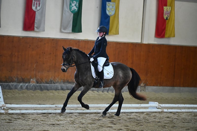 Wir haben uns entschieden unser 14 jähriges erfolgreiches Dressurpony von FS Champion de Luxe in ein 5⭐️Zuhause zu verkaufen, da Ponys leider nicht mitwachsen. Die hübsche Reitponystute in Sonderfarbe war bis 2020 in der Zucht. Seit 2021- bis heute ist Coco de Luxe erfolgreich im Dressursport unterwegs. Siegreich🏆in der Klasse A** und L** , LM platziert. Dressur Landeschampion 2023. Kann mit Trense und Kandare geritten werden. FEI Pass vorhanden und eingemessen. Ein Pony zum sofort in Dressursport durchzustarten. Natürlich regelmäßig geimpft und entwurmt. Voll beschlagen. Lässt sich problemlos verladen. Geht gerne, auch alleine ins Gelände. Absolut fein im Umgang und beim Reiten. Kennt Herdenhaltung. Sie ist 145cm groß und deckt gut ab.