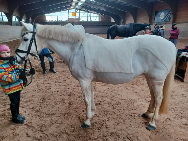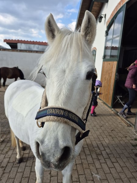 Verkaufe deutsches Reitpony – Stute, Schimmel, geb. 2010 Diese elegante Reitponystute überzeugt durch ihren starken Charakter und ihre vielseitigen Einsatzmöglichkeiten. Mit einem Stockmaß von 138 cm und ihrer Abstammung ist sie perfekt für den Dressursport geeignet. Freizeitreiter haben ganz sicher ihre Freude mit ihr, da Sie Ausritte liebt, auch durch Wasser läuft und gerne Bodenarbeit macht. Unsere Stute ist nicht als klassisches Anfängerpony geeignet, da sie sehr umweltorientiert ist und auch mal losrennen kann. Trotzdem hat unsere Tochter an der Longe auf ihr das Reiten gelernt. Wir sehen Sie als Jugendpferd (mit Trainer) oder für kleine Erwachsene, die Sattelfest sind und Durchsetzungskraft besitzen. Sie geht ins Gelände – auch allein –, kann dabei meist entspannt am langen Zügel laufen, aber auch hier mal etwas „flotter“ werden und mit einem Großpferd mithalten. Auf dem Platz und in der Halle arbeitet sie gut mit, wobei Dressur ihre Lieblingsaufgabe ist. Sie lässt sich von Kindern führen und putzen. Sie ist freundlich im Umgang, Schmiede- (Barhufer) und Verladefromm und regelmäßig geimpft/entwurmt. Zähne sind regelmäßig behandelt sowie Physio/Akupunktur vorgestellt. Sie leidet leider unter einem leichten Sommerekzem (Juckreiz, Pusteln). Dies hat Sie bisher nicht groß beeinträchtigt und kann auch den überwiegenden Teil im Jahr ohne Ekzemerdecke auf die Weide. Leichte Pollenallergie ebenfalls nur im Frühjahr bisher keine medikamentöse Behandlung notwendig. Ausbildung & Turniererfahrung: • 2024: Führzügelklasse, Reiterwettbewerb, E-Dressur und E-Springen gestartet und platziert, seitdem nur im Freizeitbereich unterwegs aufgrund Turnierreitermangel Sie wird regelmäßig im Reitunterricht geritten und kann erste Lektionen der Kl. L in der Dressur. Springen wird aktuell nur im niedrigen E Bereich ab und an mit ihr geritten. • Frühere Turniererfolge bis Klasse A** beim Züchter • Auch züchterisch hochinteressant: 7 Fohlen, alle prämiert • Selbst als Goldprämienfohlen ausgezeichnet Haltung bisher: Laufstall oder Sommerweide (bei Züchter) Aktuell Box mit Paddock und täglichem Koppelgang (In der Herde ist gerne ranghoch, ordnet sich aber dennoch unter, wenn es sein muss). Eine Grundausstattung (Halfter, Abschwitzdecke, Reithalfter, einfacher Dressursattel) kann mit abgegeben werden. Warum wir verkaufen: Unsere Tochter besitzt noch ein zweites Pony und schafft es zeitlich nur, eines regelmäßig zu reiten. Ich als Mama möchte gern auf Kleinpferdgröße umsteigen – deshalb suchen wir ein neues Zuhause mit aktiver Nutzung und viel Liebe. Kein Notverkauf!