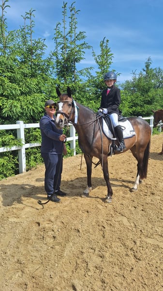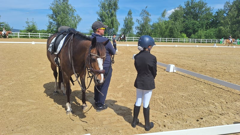 Elegant German Riding Pony mare Selka, born in 2010, and her daughter Saphira are seeking new companions on their journey. Saphira will turn three years old in July. She is familiar with the foal basics and currently lives in a small herd in an open stable. At the moment, we still miss a bit of size in her, but ponies typically grow until age seven. She has a solid foundation and a good temperament. Selka is currently mainly used with smaller children on the longe line, which she handles with great patience and calmness. She is very gentle and does not want to lose her young riders. Unfortunately, all her peers have outgrown her, which is why she is now only used sparingly. This is also the reason for her sale. Both are barefoot, despite our tough terrain. They are ponies at heart—full of spirit and life, but also cuddly and affectionate. It would be ideal if they could stay together. Due to their pedigree, they are also very interesting for breeding. Selka was awarded a premium status at the breed association and was presented at the foal show. If you are interested in both, we would be happy to provide videos and more pictures.